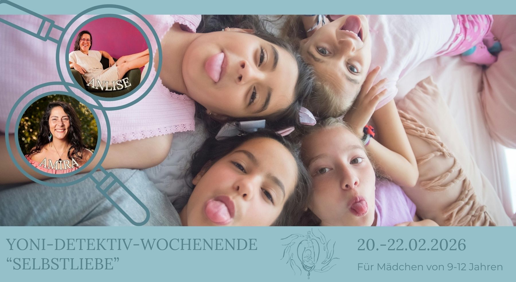 Ein ganzes Wochenende nur für die Mädchen – zum Forschen, Fragen, Entdecken, Staunen und Wachsen. Die Mädchen schlüpfen selbst in die Rolle der Yoni-Detektivinnen und begeben sich auf eine spielerische, liebevolle Entdeckungsreise zu Selbstliebe, Körperwissen und Zyklusbewusstsein. In einem geschützten Raum, getragen von Gemeinschaft, Neugier, Kreativität und Vertrauen.